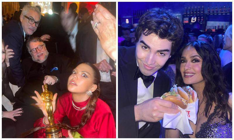 En otra de las fotos captadas por Bu Cuarón, su hermano Olmo,de 18 años, aparece al lado de Salma Hayek en el after party organizado por Vanity Fair tras los Oscar. En la instantánea, Olmo y Salma se dejan ver disfrutando de una deliciosa hamburguesa. A la fiesta después de la entrega también acudió Valentina Paloma, quien se cambió de look para lucir un vestido rosado, mientras que su madre optó por un vestido metalizado con escote en v.