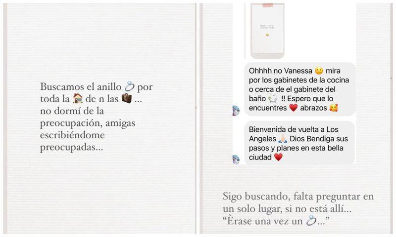Al día siguiente, recibió una gran noticia, ¡su anillo apareció! Este se encontraba en el pliegue de la silla de maquillaje. Como moraleja, Vanessa recomendó que el anillo se debe guardar en su estuche, inmediatamente después de usarlo. “Moraleja: Siempre que te lo quites, ¡directito a su caja! ¡Ni para lavarte las manos! Por el bebé me lo quito a cada rato, ¡no lo hagas! Gracias por todos los mensajitos preguntando y dándome ideas de dónde conseguirlo”, escribió en otro post.