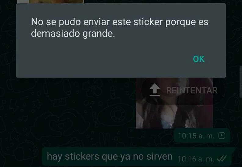Es decir, no importa si los stickers ya fueron creados y utilizados en ocasiones anteriores. Si pesan más de 1MB, ya no funcionan.