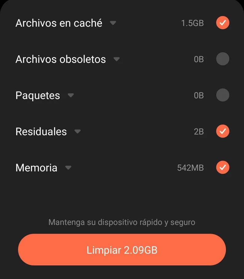 Dependiendo el modelo de teléfono, hay algunos que ya tienen instalado un limpiador por defecto que borrará la memoria caché en todas las aplicaciones instantáneamente.