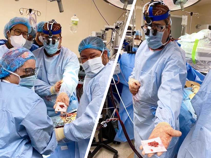 Se trató de un paciente historial del cáncer en la laringe tenía una traqueotomía. Con el Angio Vac, herramienta jamás usada en Puerto Rico , se realizó una cirugía en la que se succionan los trombos en el conducto del atrio del corazón de este paciente. Este equipo funciona como si fuera un succionador y evita que el paciente sea intervenido de una manera quirúrgica y riesgosa.