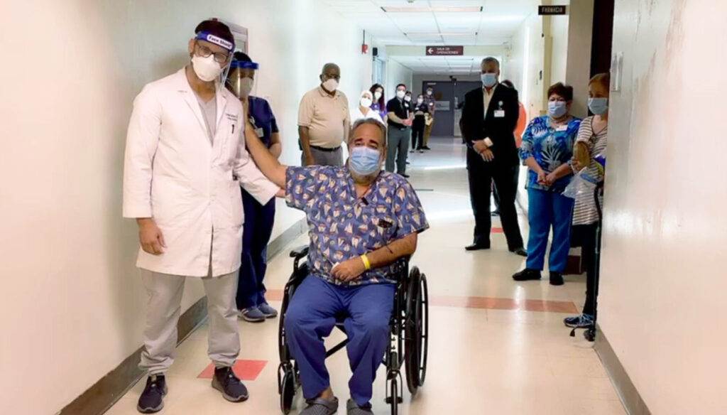 “Cuando llegué en ambulancia a San Pablo Bayamon, inmediatamente me estaba esperando el doctor Ramón Suárez Villamil, el médico de salas de emergencia, él me atendió y al ver el oxígeno que tenía me transfirieron inmediatamente a la unidad de cuidados intensivos, eso fue el 13 de julio. Me deterioré tan rápido que empecé a tener fallo respiratorio. El día 14, al otro día, me tuvieron que intubar y conectarme a un ventilador mecánico”, contó el emergenciólogo.