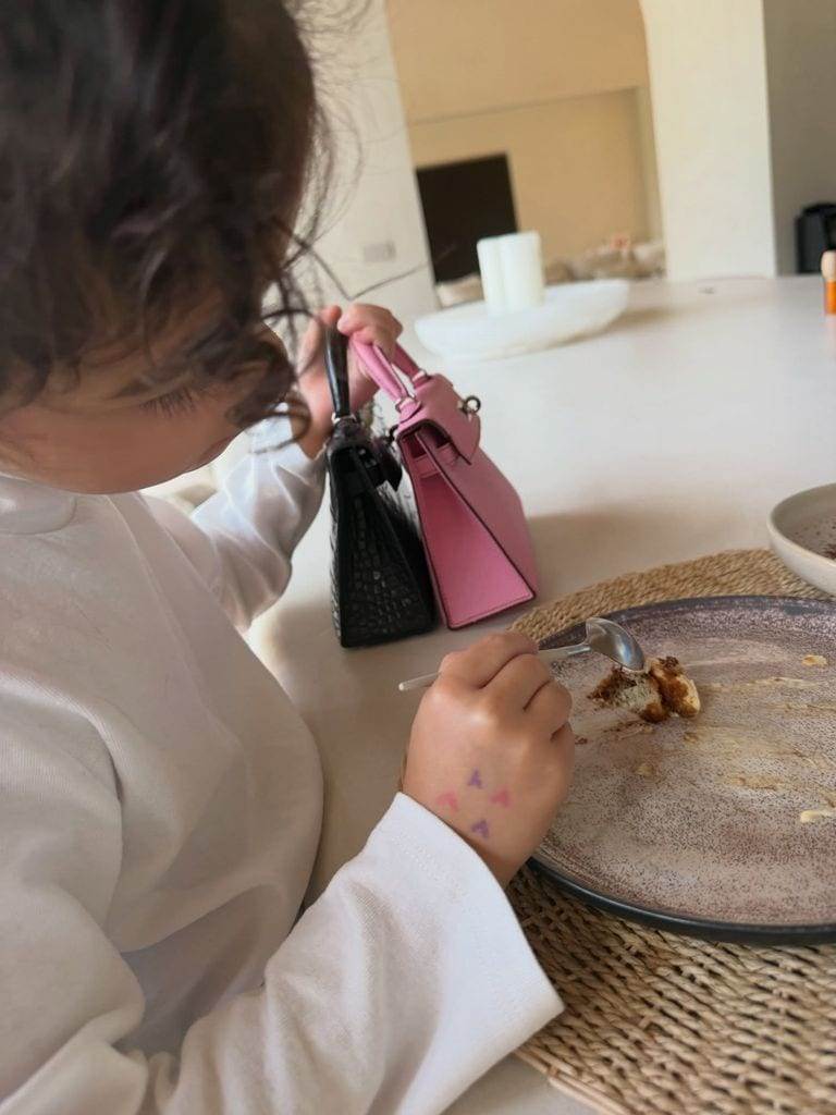 Y tal parece que esta afición por los bolsos ha alcanzado a Bella, pues otra de las fotos de aquella publicación mostró que la niña tiene su propia colección. En la imagen aparecía la pequeña, quien el 18 de abril cumplirá 4 años, sentada a la mesa comiendo tranquilamente. Y mientas en una mano tenía la cuchara, con la otra sostenía un par de bolsos a su tamaño: uno negro de cocodrilo y otro rosa bebé, ambos de un estilo parecido a los Birkinde su madre.