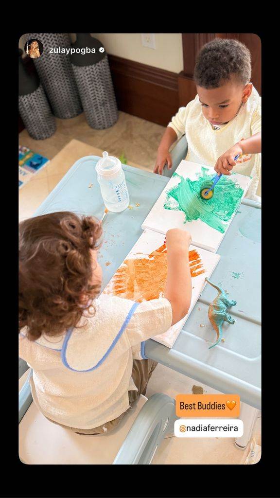 Aunque es muy pronto para definir si el hijo de Marc Anthony seguirá sus pasos, todo parece indicar que es un niño muy creativo, pues esta no sería la primera vez que Nadia Ferreira lo muestra disfrutando de la pintura.