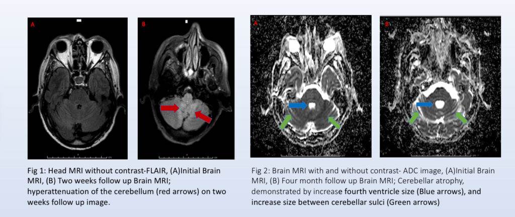“Durante el transcurso de hospitalización fue referido al área de rehabilitación y dos meses más tarde se realizó nuevamente una resonancia magnética. Sin embargo, en esta ocasión, se empiezan a ver cambios en comparación con las resonancias magnéticas previamente realizadas, y vimos atrofia (en el área cerebral) y esto no es tan fácil de ver a simple vista, pero esto es uno de los primeros hallazgos que nos llevó a pensar que el paciente estaba sufriendo de cerebelitis”, abundó.