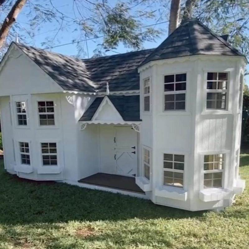 La casita de madera tiene un poco de estilo victoriano y por fuera, está pintada de color blanco y en los techos, tiene tejas en tono gris oscuro. Por dentro, aún faltan algunos acabados como la pintura y demás decoraciones que seguramente madre e hija le irán añadiendo, pero de primera vista, podemos decir que es de lo más encantadora.
